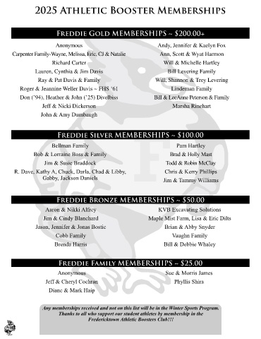 2025 Athletic Booster Memberships