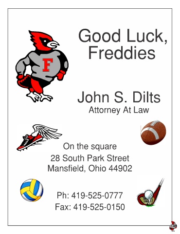 Good Luck, Freddies John S. Dilts Attorney At Law On the square 28 South Park Street Mansfield, Ohio 44902 Ph: 419-525-0777 Fax: 419-525-0150 35 35 35